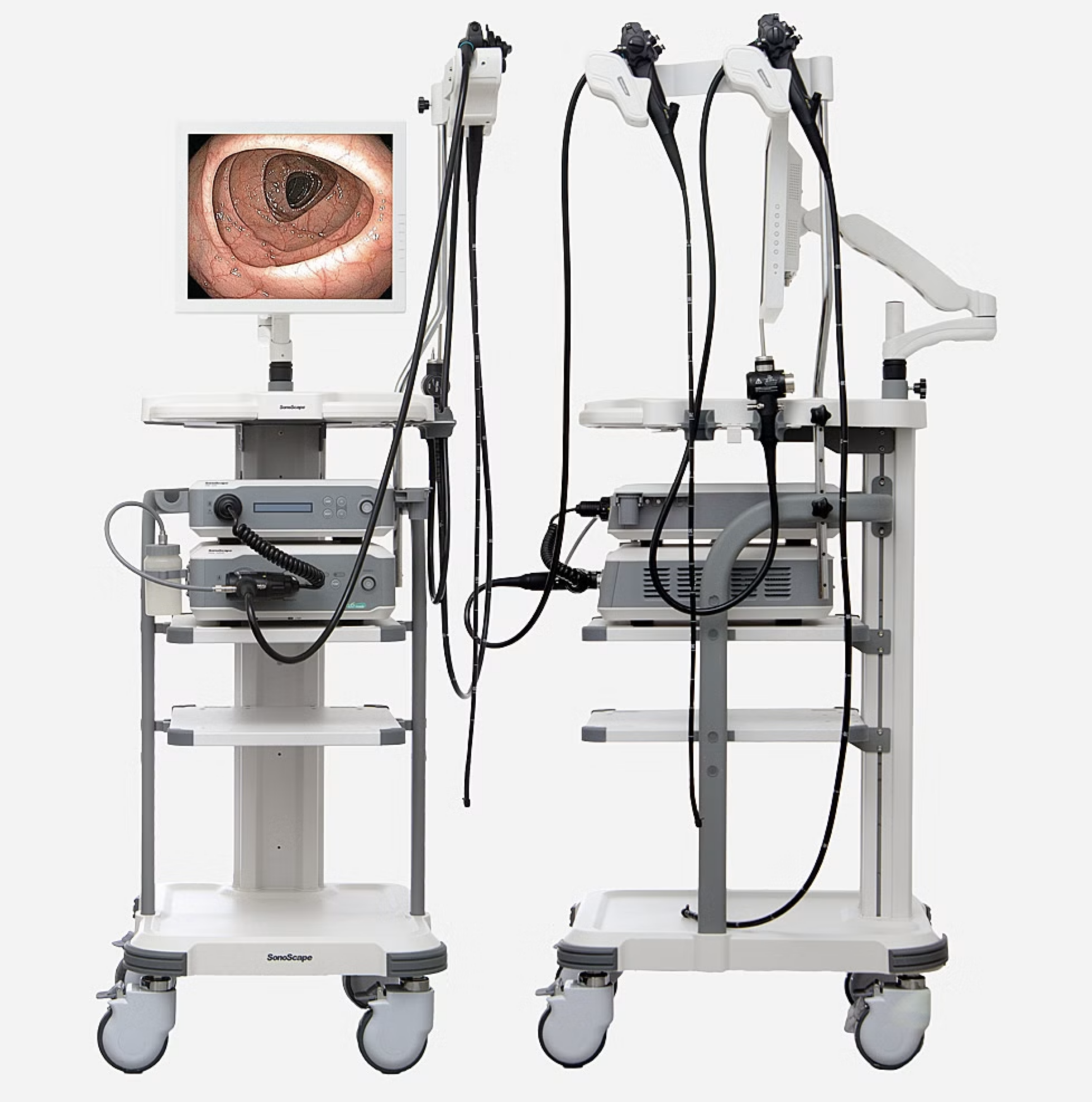 Современные стойки объединяют в одну систему эндоскоп, монитор, видеокамеры, вспомогательные инструменты, источники света и многое другое. Это исключает хаотичное расположение элементов, упрощает работу специалиста.